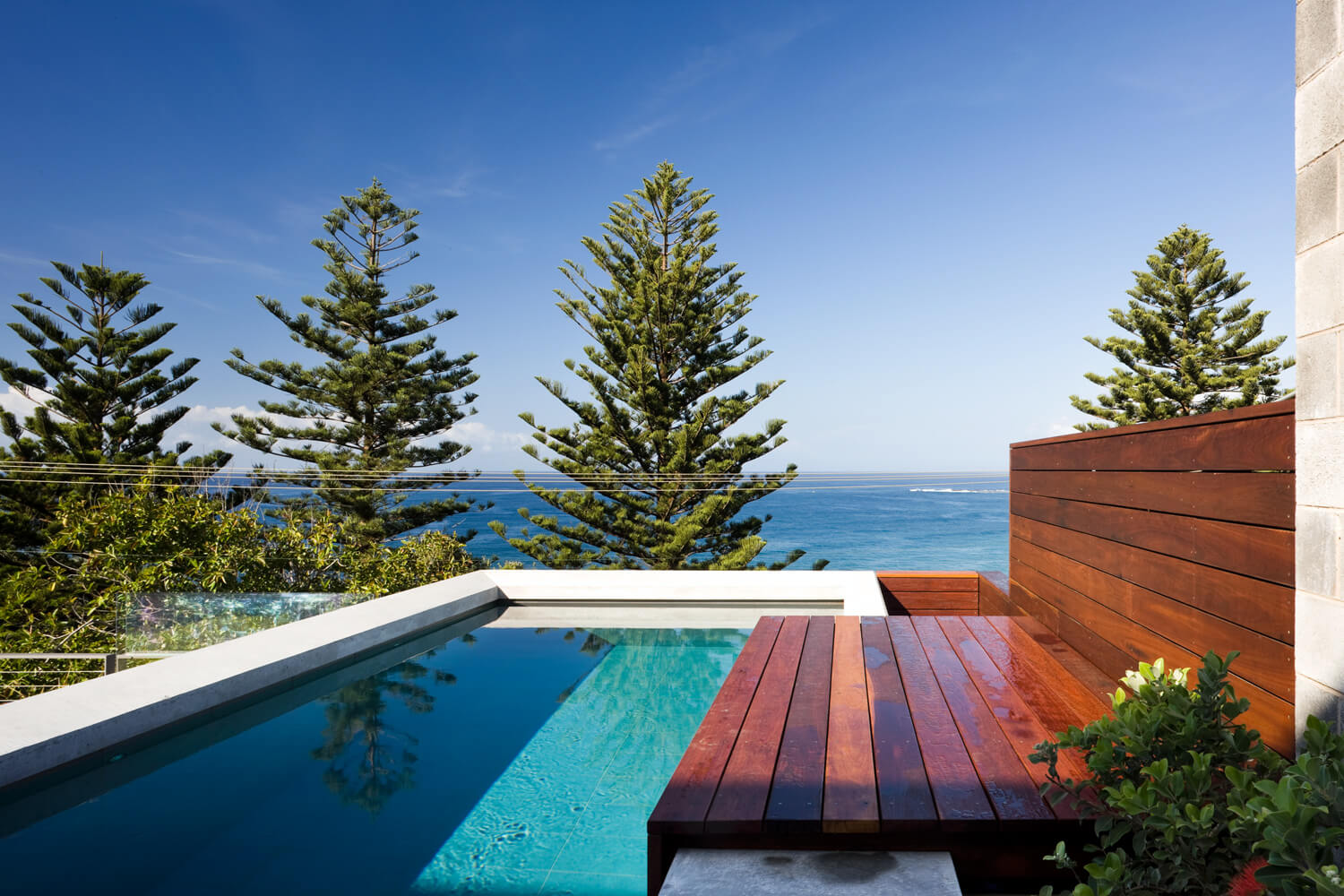 New house on Bilgola Plateau incorporating post-tension concrete floors, detailed structural steelwork, new swimming pool and terraced areas.