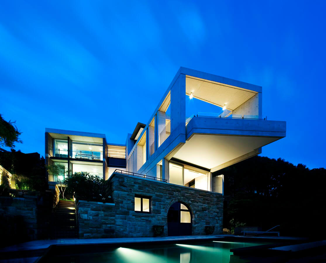 Deep excavation on a sloping block to form a residence predominantly constructed from off form concrete with a large cantilever floor out towards Port Jackson. All set out from the original Edwardian stone basement walls.