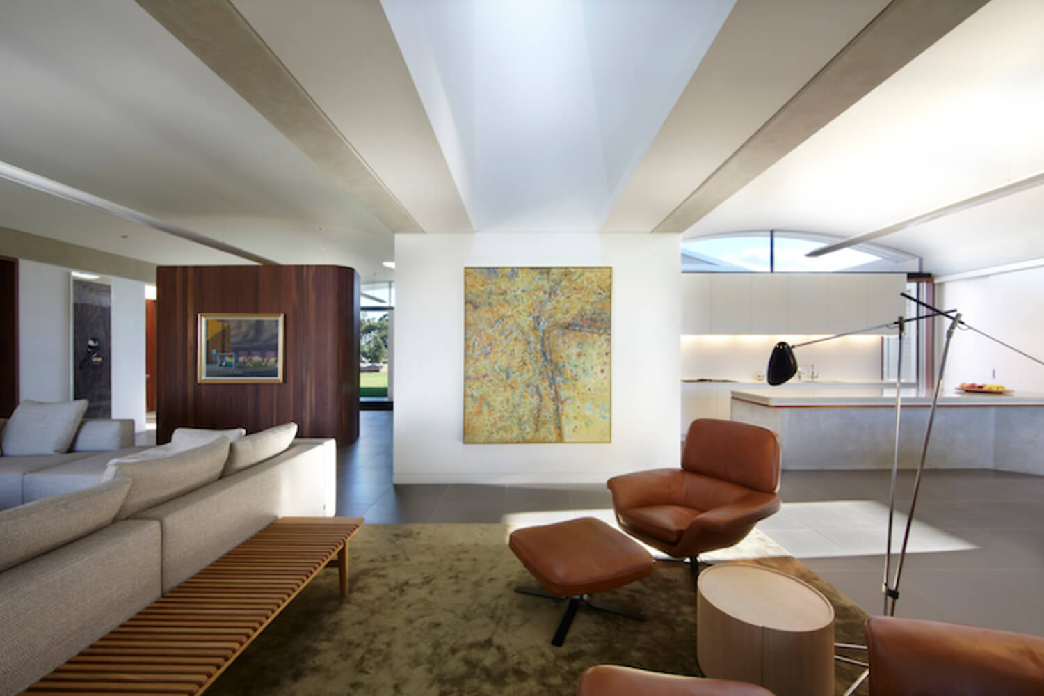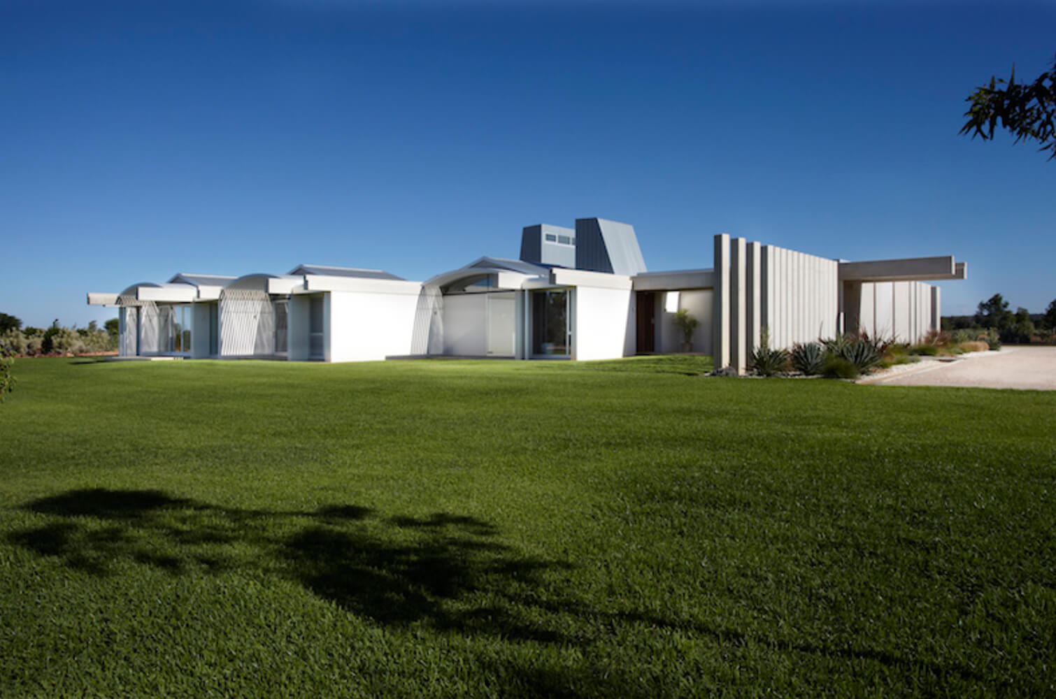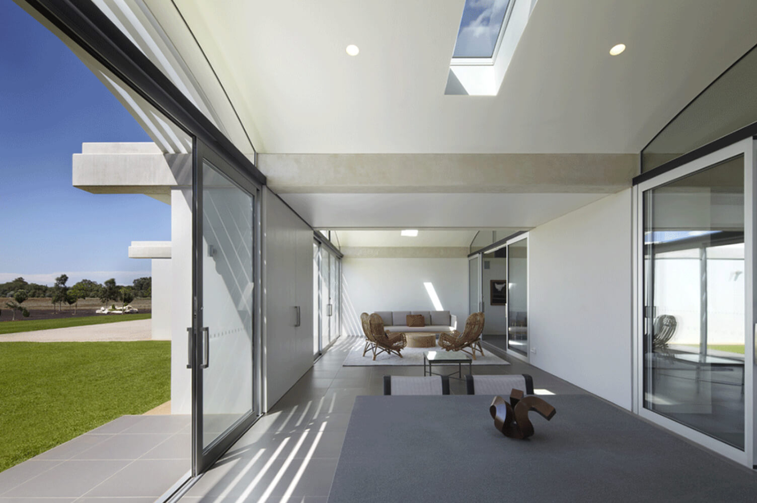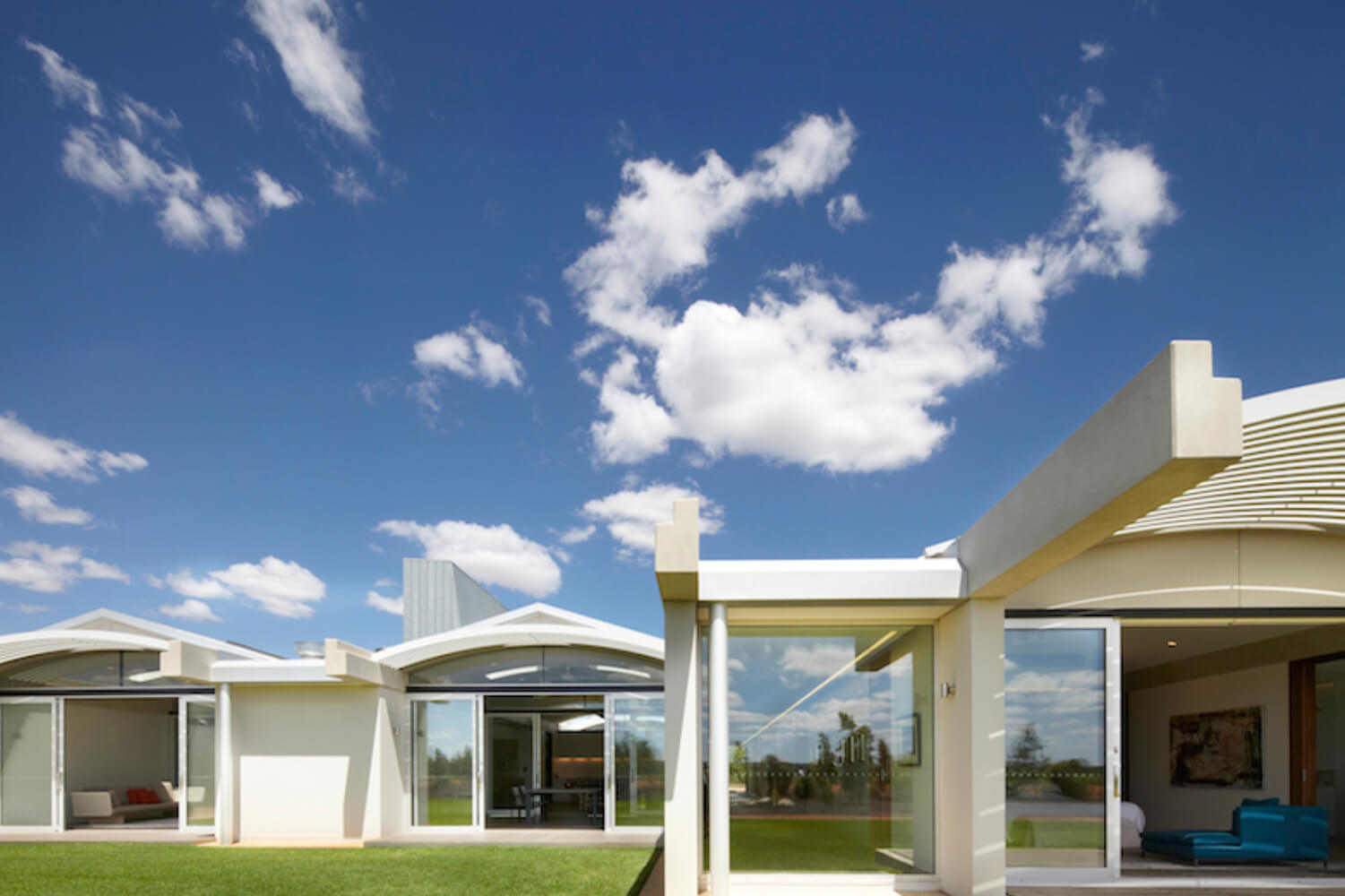 Architecturally designed by PopovBass, this rural residence was the winner of the 2014 Wilkinson Award for residential architecture. The project features exposed precast concrete beams and colonnade external features across a single level but expansive residence with adaptable indoor/outdoor spaces and feature vaulted ceilings throughout.