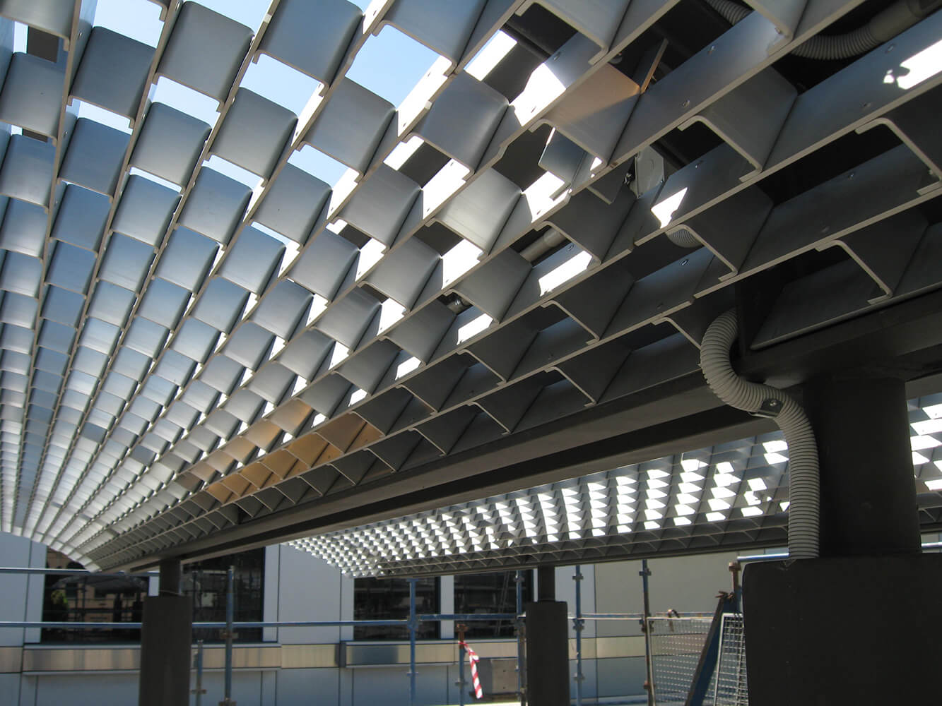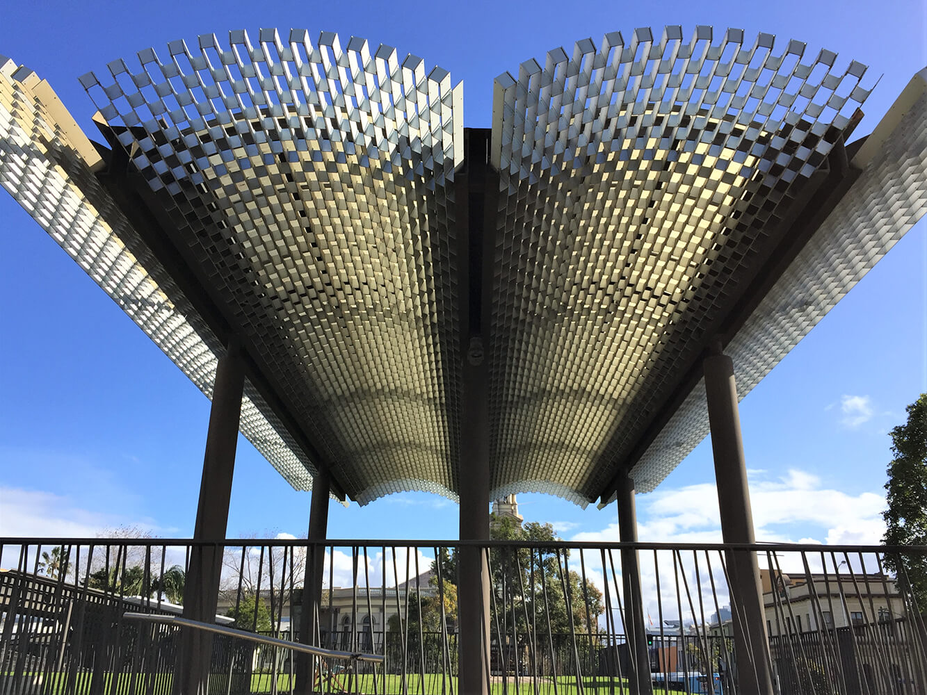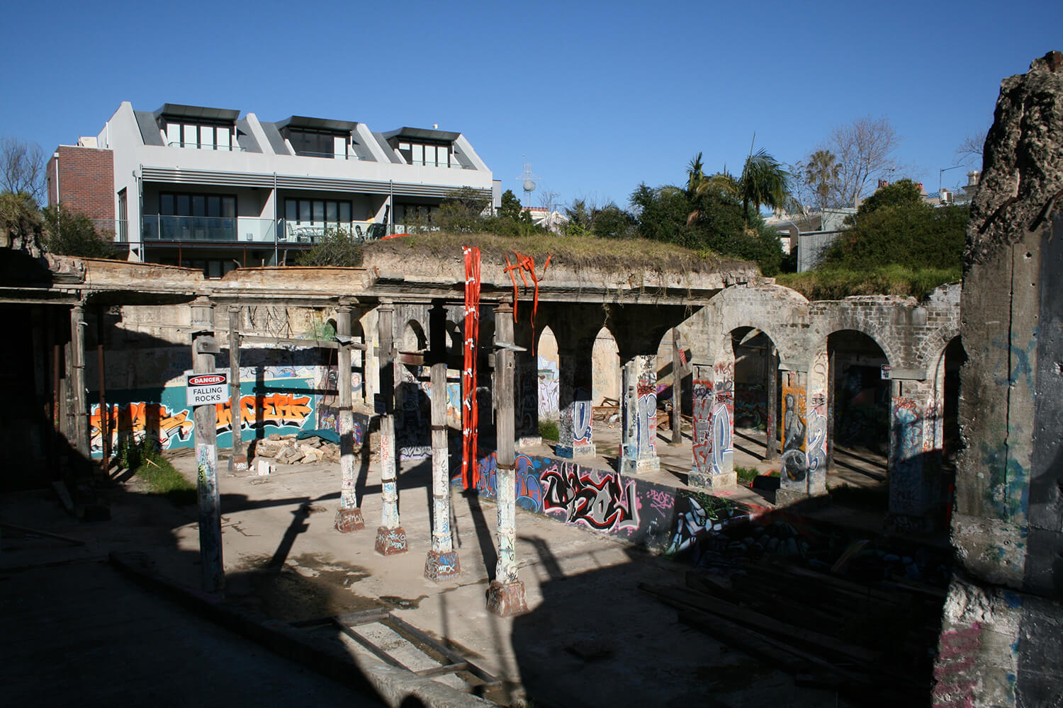 The work required structural stabilisation and repair of the existing brick vaulted roof arch structures while safely maintaining the ruined character of the space. New reinforced concrete feature works strengthen the original dilapidated structures while ensuring their integrity into the future and soaring new steel framed shade structures reflect the arch forms of the original reservoir roof with the new urban park made fully accessible via new lift access and ramps.