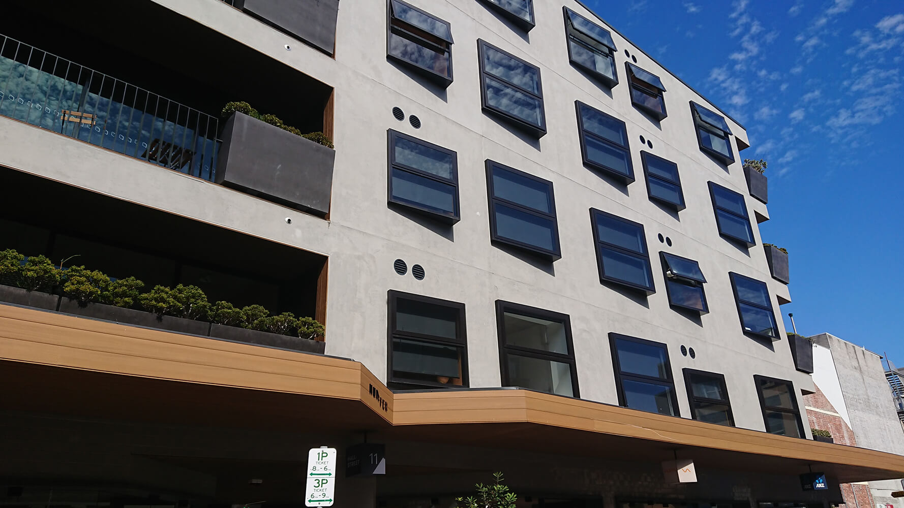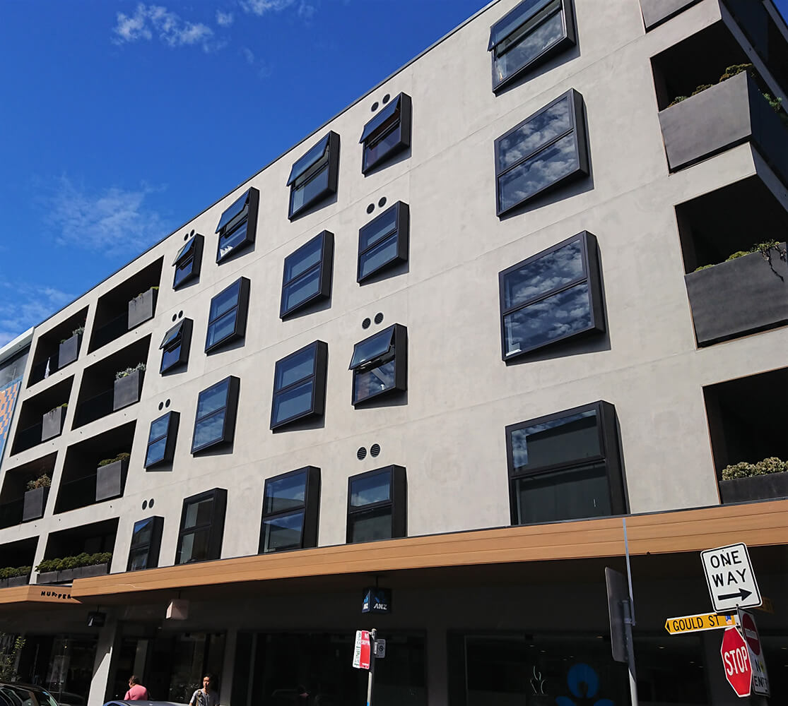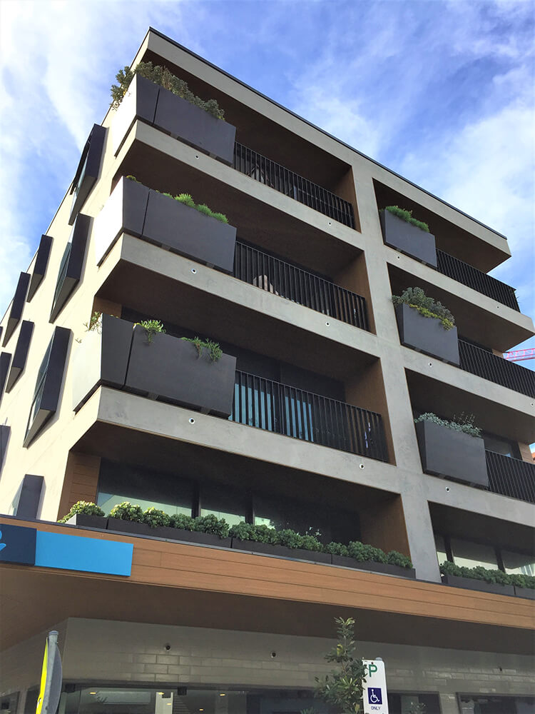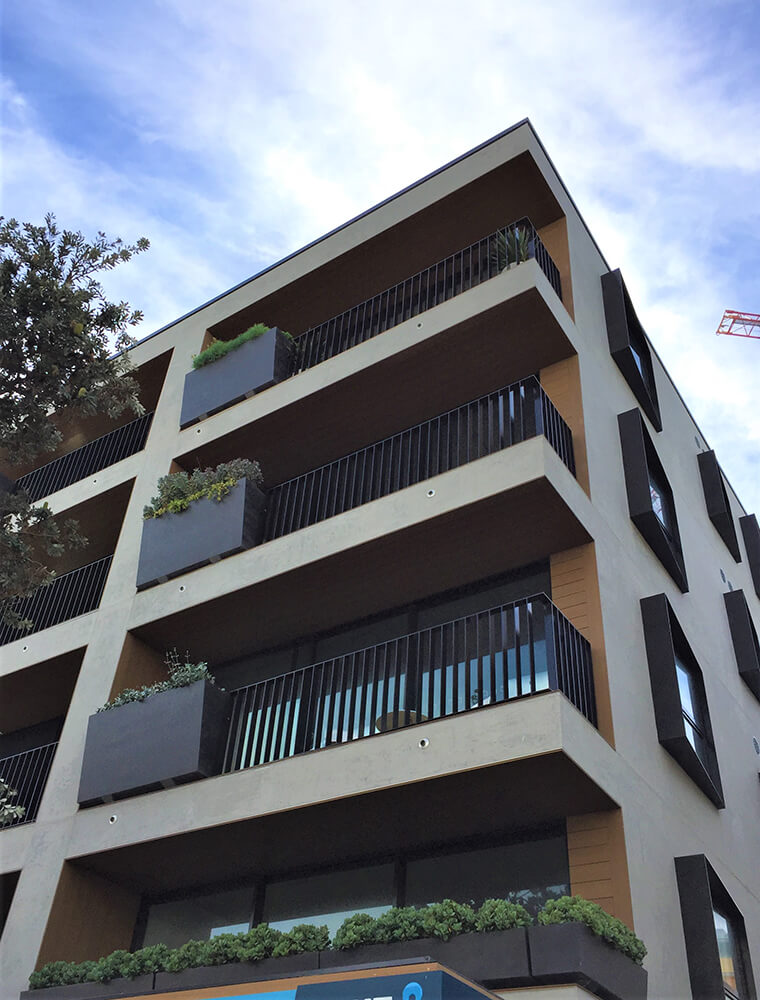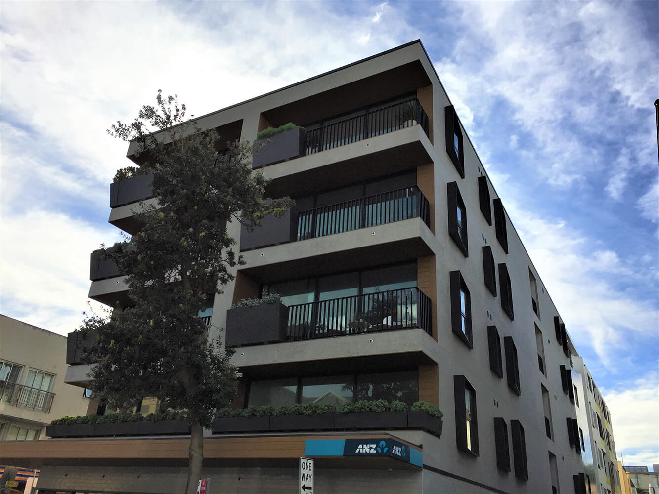 As part of the planned upgrades of Hall Street and Gould Lane in one of the busiest areas of Bondi, this project of mixed commercial and upper level small apartments features concrete framed construction and sensitive excavation support along with feature planters to external balconies. The 5 storey multi residential building was designed to suit the areas demographic while maximising the amenity of residents both long and short term in this busy area.