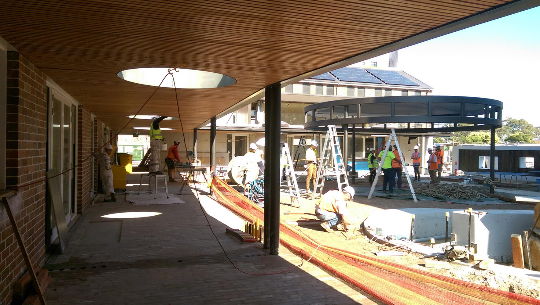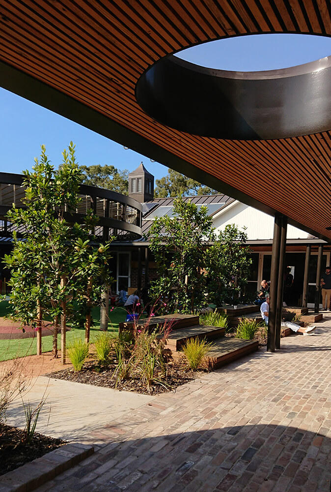 This new childcare centre involved the adaptive re-use of a former South Sydney Hospital heritage listed building in the rapidly expanding suburb of Green Square in Sydney. A new single storey off-form concrete structure complements the existing brick buildings along with extensive landscaping works to the external areas including shade structures and play equipment to create outdoor play space for the 84 place early learning centre.